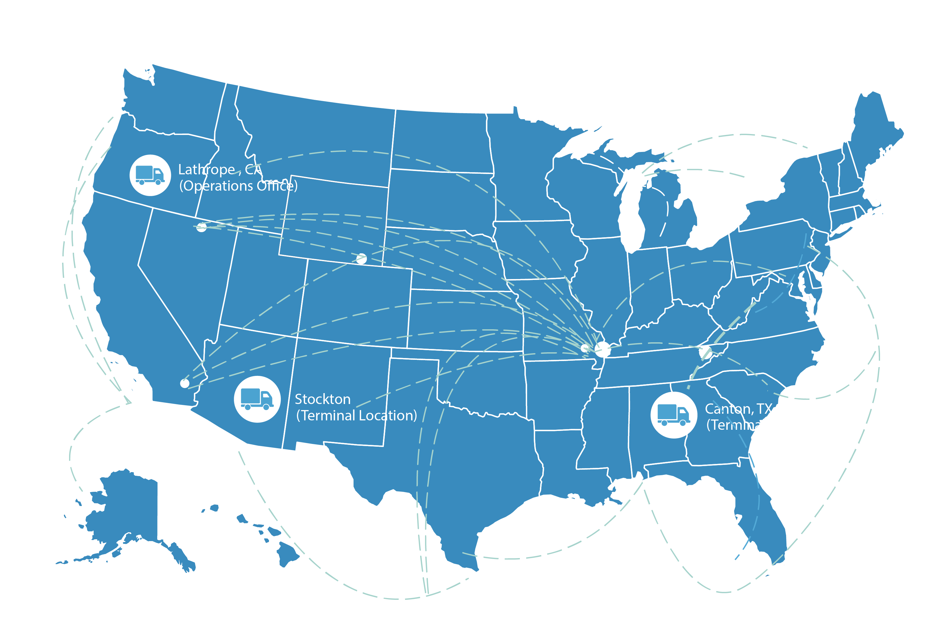 Our freight network ensures reliable truck deliveries across the highlighted regions.